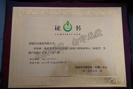 • 2015-01-28福建省新材辦通過我公司“蒸壓加氣混凝土砌塊”新材產品認定
